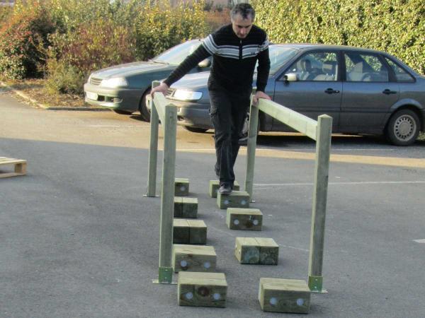- Le module pas de géant consiste à passer de plot en plot soit sans toucher le sol, soit en descendant entre chaque plot ou les coller les uns aux autres.