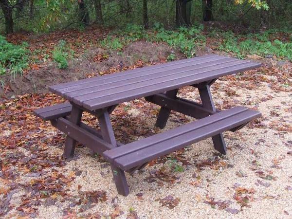 • - Table de pique nique réalisée exclusivement en matériaux recyclés