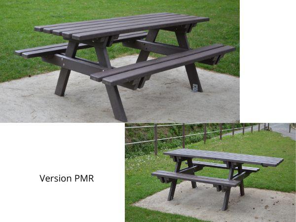 - Table de pique nique réalisée exclusivement en matériaux recyclés